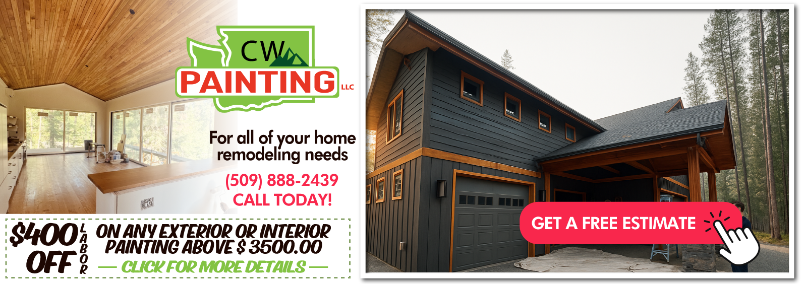Welcome to CW Painting LLC—your trusted local provider for professional painting, drywall finishing, wallpapering, carpentry, textures, and general property improvement services in Wenatchee, WA. Since 2017, we have proudly enhanced residential and commercial spaces through quality artistry, dependable service, and exceptional customer care. Recognized as Wenatchee World’s Best in 2023 and 2024, our company continues to deliver top-tier results that elevate curb appeal, interior comfort, and long-term property value. Whether you need a fresh interior, a clean exterior repaint, new textures, or complete drywall finishing, we bring precision and dedication to every project.